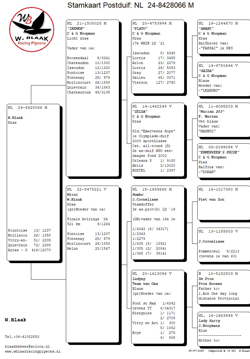 Dan de oude duiven, die gingen er 7.00 uit. Zoals ik al schreef , wel hoop geen verwachting. Ik kreeg ze voor geen meter aan het eten deze week, dat zal op meer hokken zo geweest zijn maar ik had er geen lekker gevoel over. De meldingen overziend schatte ik in dat ik rond 14.10 moest draaien voor een vroege hier in de regio, het wordt uiteindelijk 14.16, wanneer ik de “053” als 1e getekende op de plank krijg (wat heb ik er toch een verstand van). Dan valt er direct een te groot gat als op `22 weer een duif boven het hok hangt, mijn oudste van de bende , de “104”. Mijn beste dagfond doffer die het niet heeft dit jaar (zoals de meeste op mijn hok haha) , dus het feit dat hij als 2e arriveert bevestigd mijn vermoeden dat het niet best is. Daarna komen ze met gaatjes van 2 minuten doorvallen, waarna het na de 10e duif stil valt. Bij het afslaan zijn de cijfers duidelijk, gewoon heel matig. Ik ga even goed nadenken wat ik de komende weken ga doen. Duiven die niet top zijn (vooral geen vorm hebben) op 600 kilometer spelen is jezelf en de duiven pijn doen. Maar goed komt tijd komt raad. De eerste 3 duiven waren: