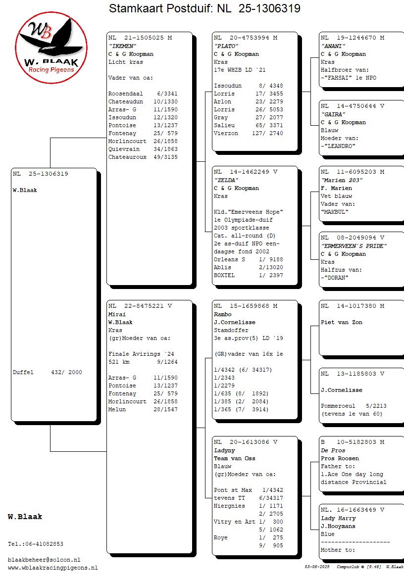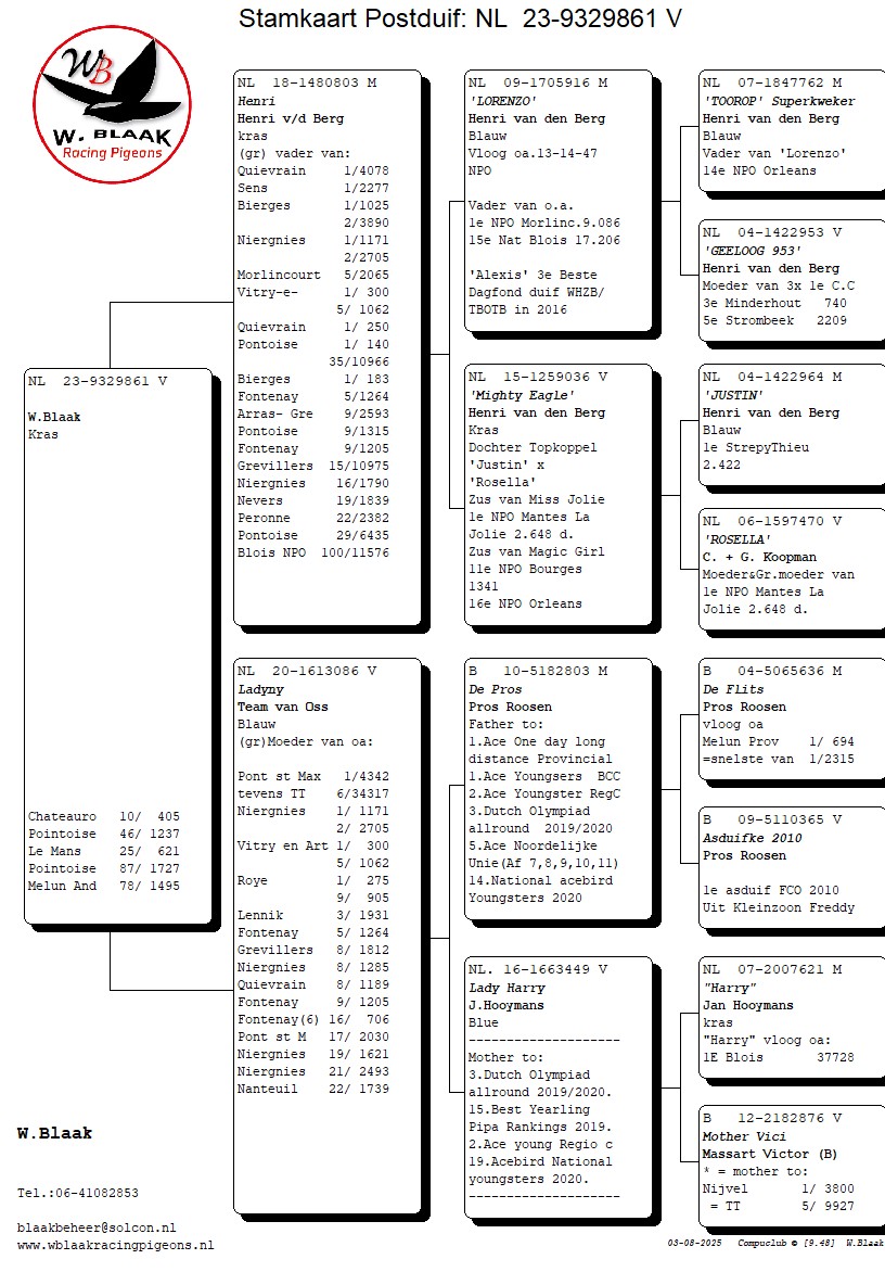 Dan dus Orleans. Zoals gezegd de duivinnen op eieren laten komen en afgelopen week 4x op 25 km gezet. Steeds dezelfde duivin als 1e naar binnen en die was 1 keer voor de troepen uit. Doe eens gek, haar maar als bovenste gezet. Naast de duivinnen mijn 4 beter presterende doffers ook maar meegegeven, ondanks de waarschuwing van Jan Ouwerkerk een aantal jaar terug dat doffers spelen op 5-7 dagen eieren een kansloze exercitie is. Overigens bijzonder dat deze vlucht ineens naar Orleans is gezet. Wij (afdeling 5) programmeren al jaren een 6e dagfond vlucht en die is vaak juist verder en niet korter bij. Prima initiatief om er een leuke nationale vlucht van te maken maar hou het dan wel bij de dagfondappel en maak er geen midfondmoes van! Voor Zeeland op de kortste afstanden net 400 kilometer. Het inkorten levert ook niet meer deelnemers op, want in totaal waren er maar 10.000 duiven mee, waarvan 6100 uit sector 2. Donderdag met inkorven werd er overigens wel geroepen dat er een verdere afstand zou worden genomen, maar daar was op de website van de afdeling niets over te vinden. Dus gewoon uitgegaan van de 485 kilometer die Orleans normaal voor mij is. Na de eerste melding van Richard werd ik ook niet wakker dat er iets niet klopte aan zijn snelheid en de snelheid die ik op mijn klok zag teruglopen. En dan sta je je dus voor Jan .. te ergeren. Tuurlijk ik zat zoals heel het jaar te laat, maar de eerste duiven maakte beduidend meer dan de 1366 meter die de klok aangaf toen er op 13.55 binnen een halve minuut 2 duivinnen vielen. Niet geheel verrassend, beide duivinnen 2 keer voorop gehad op de dagfond. Daarna een gaatje waarna er gestaag 6 van de 8 duivinnen thuis komen. Bij het bekijken van de live meldingen blijk ik zowaar de 6e en 8e gemelde te hebben met een snelheid van 1424 en 1422 meter. Ik groot verband word ik nu zoals verwacht compleet weg gevaagd, Bas zal gedacht hebben, pak jij me maar met de jongen dan draai ik er wel 38 voor je koker op de dagfond. Het is wat het is, verder dan Krimpen hoef ik dit jaar gewoon niet te kijken. Is dat alleen maar kommer en kwel dan. Nee eigenlijk niet, want ik word aangewezen dagfondkampioen en heb de 1e, 3e en 9e dagfond kampioensduiven van de Krimpenerwaard (niet geheel toevallig mijn eerste 3 vandaag) Een keer de beste dafond duif in onze regio hebben was ook een doel en die hebben we verwezenlijkt, uiteraard met dank aan Petra <3.