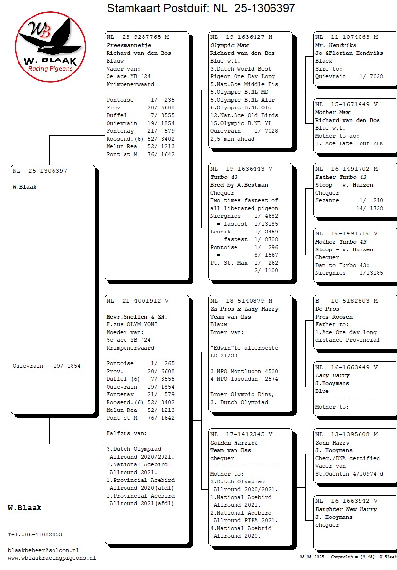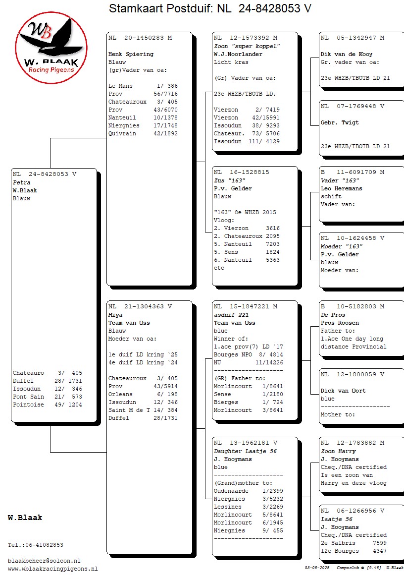 Deze duivin zal dus voortaan als Petra door het leven gaan. Saillant detail wat dit verhaal nog iets mooier maakt is het feit dat de vader van deze duivin bij mijn overleden vriend Henk vandaan komt. Wat zou hij hiervan genoten hebben, het is hem (en ons) helaas niet meer gegeven om dit moment mee te maken.