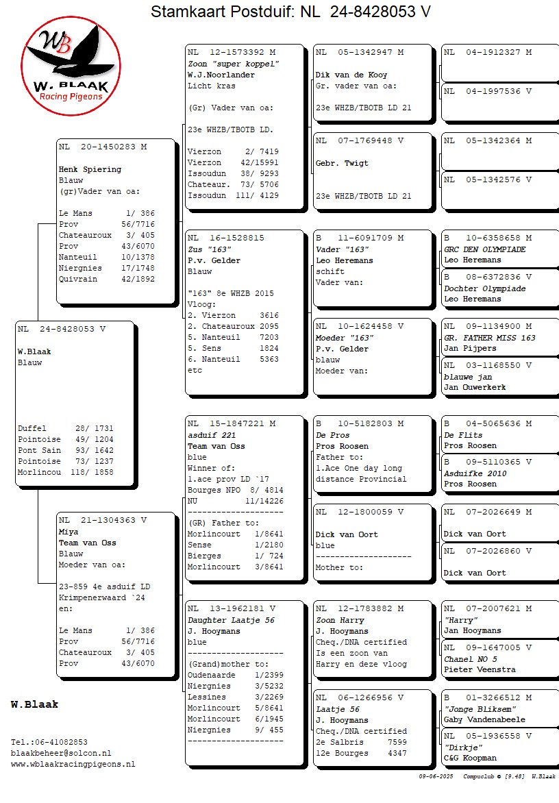 Overigens wel opvallend dat in zowel mijn 1e als 3e duif  superkweker “de Pros” van Team van Oss zit, maar uit 2 verschillende koppelingen.