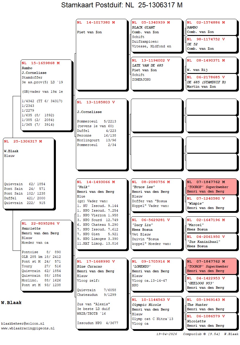 Naar aanleiding van mijn vorige blog kreeg ik, zoals ik wel verwacht had, een aantal vragen c.q. opmerkingen. Dit liep uiteen van “Waarom zo negatief” tot “Wat scheelt of schort eraan dan?”. Zoals ik al schreef is het een gevoelsmatige kwestie en zoals ik sommige mensen antwoordde: Pietertje heeft er bar weinig verstand van, dus wellicht valt het mee. En persoonlijk zie ik het stukje niet als negatief, maar als realistisch. Zo was ik ook realistisch over mijn kansen voor dit weekend. Ik zag al snel dat het zaterdag niets ging worden en op zondag stond er een WNW wind. Als je dan meeneemt dat Bierges een oostelijk gelegen losplek is en Capelle aan de meest westelijke kant van het losgebied ligt dan moet je niet teveel rekenen op vroege duiven. Ik had besloten om niet naar de meldingen te kijken en me te laten verrassen, de duiven die van afdeling 6 overkwamen gingen te langzaam om een goed idee te geven van de mogelijke aankomsttijd van onze duiven. Ik schatte in dat we tussen de 1350-1375 meter zouden maken, dat zou op 9.52 duiven thuis betekenen. Dit riep ik ook naar een vaste letter die aan de overkant stond te kijken, maar ik was nog niet terug gelopen in de tuin toen recht uit de goede hoek op `49 een duif komt aanknallen die zonder dralen op de plank valt en 1405 meter laat noteren. Het blijkt de “307” te zijn die zich als jong op de laatste Pont ook al liet zien. Das een mooie schiet er dan door je heen, maar als er gelijk al weer 1 boven het hok hangt twijfel je toch, zo goed pakt Pietertje ze meestal niet haha. Het blijkt de “060” te zijn, mijn schalie doffer die al eerder op tijd was als jong van Bierges, die losplek ligt hem dus wel. Dan valt er een klein gaatje waarna het duiven gaat en blijft regenen. Binnen 23 minuten zitten er 48/48 in de klok en kan ik rustig in de stoel gaan bijkomen. Een eerste blik op de meldingen laat zien dat die eerste 2 duiven er goed bijzitten. Uiteraard maakt 1 zwaluw geen zomer, maar dit is wel een prettige verrassing die ik misschien wel even nodig had. Uiteindelijk wordt het 4 en 8 tegen 2433 duiven in de Krimpenerwaard, (75% 1 op 4 in de prijzen) 16 en 30 tegen 3837 in de Gouwe tegen en de 60e tegen 14860 van de totale lossing blauw/groen. De eerste 3 duiven waren: