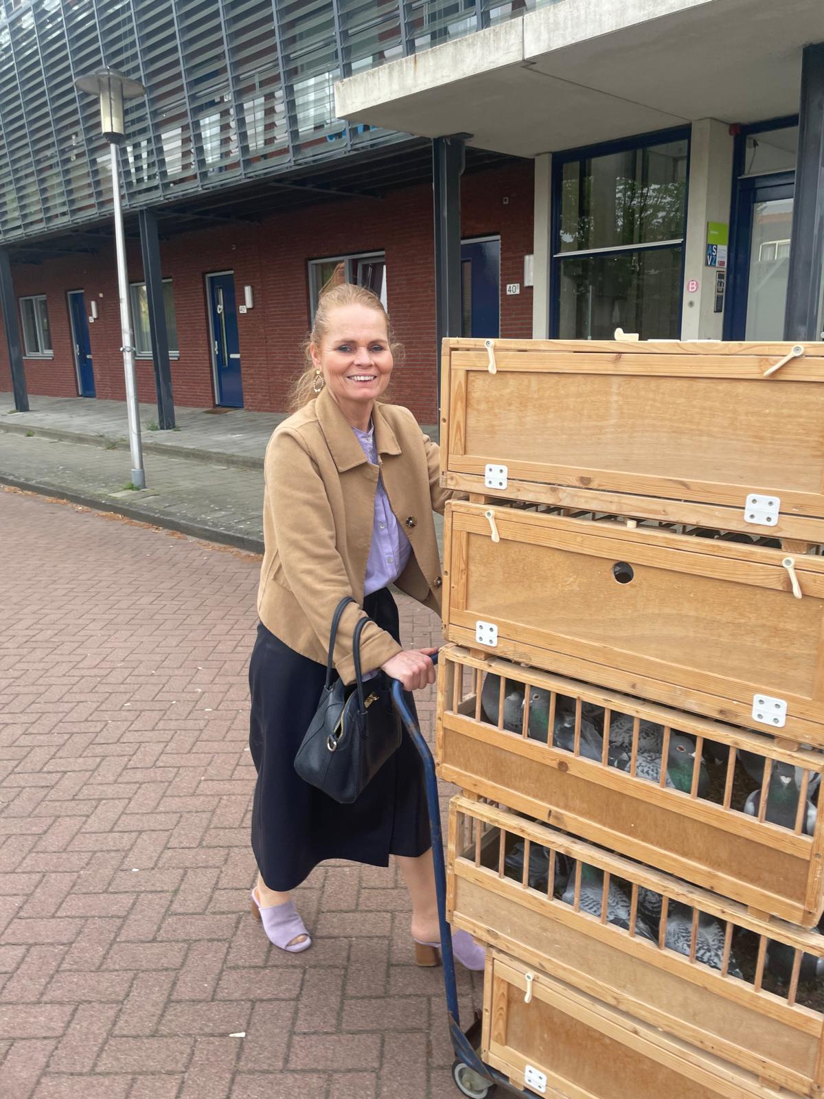 Overigens was de 4e de 384, een volle broer van de 307, wat ik ook opvallend vond was dat ik 4 doffers voorop had. Of dat alleen in het verduisteren zit weet ik niet, wellicht dat de kleine aanpassing aan het weduwnaarshok ook mee heeft gewerkt. Maar natuurlijk heeft elke melker zijn geheim, het mijne zal ik maar gewoon vertellen. Aangezien ik afgelopen vrijdag het examen gala van school had kon ik de duiven niet inkorven. Ik was vergeten om het op tijd aan William te vragen, dus was Petra de klos. Alle duiven netjes klaar gezet en zo kon ze samen met Naomi naar Lekkerkerk.